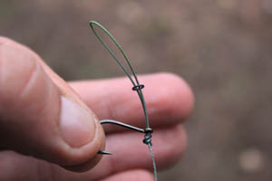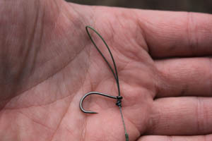 Now tie a smaller loop in the other end of the hook link, this is for attaching to the ring swivel on my lead clip system.