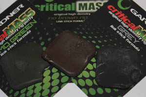 Take a piece of Gardner “Critical Mass” Putty. I like to choose the colour relative to the bottom I’m fishing over, in this instance it’s the “Camo Green” as I’m using this rig over light weed.