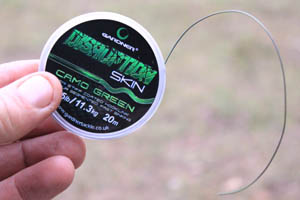 Cut off the desired length of hook link depending on what you are fishing over, a good starting point is around 12 inches. I also like to blend in the colour of the hook link to the bottom I’m fishing over.