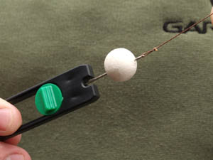 Step 3 – Tie a small loop in the end of the stripped braid and attach a 12mm pop-up.