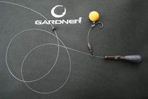 A naked chod constructed using medium <span class=Gardner Target Line Stops and a Covert Safety Bead” width=”300″ height=”200″ class=”alignleft size-full wp-image-10130″ />