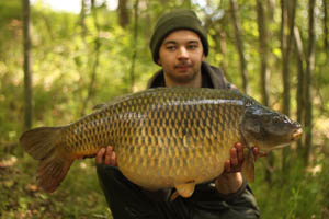 An angry common weighing 21lb 12oz known as “Stumpy” due to its deformed pelvic fins had me stood in the cool night at around 2.30am. The rod was repositioned and I went back to sleep full of confidence and around 5am I was once again in battle curve just as it was starting to get light. A stunning 24lb 10oz common was soon followed by a fairly plain looking long 24lb 8oz mirror. The fish seemed to start off on the left hand side of the swim then move across as the morning developed. This was proved true as Craig was in to another fish and his third thirty on the bounce was soon added to his tally and this time “The Big Common” was his prize, all 34lb of it!