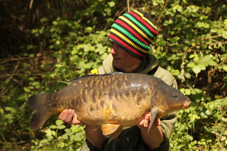 Just as we were about to call it a night at around 10.30pm my left hand rod was once again singing its merry tune. The fish instantly felt of a better stamp and before long “The Brute Mirror” was being admired on the mat. We decided to weigh it straight away at 33lb 14oz and get some night shots as it was too long to sack the fish for even in the deep margins we had in front of us. After returning the fish a celebratory brew was in order and we sat chatting excitedly about the prospects of what could follow at the morning bite time. Unfortunately we both awoke around 6am and everything seemed strangely quiet compared to most mornings that had passed so far. There were still a few fish showing to the left of our swim but nowhere near as many as before but we remained hopeful never the less. Unlike previous mornings we were seeing fish show on the opposite side of the lake and it was becoming clearer that the bulk of the carp were now on the opposite side of the lake. Around 8am I was just making some breakfast when my middle rod sprung in to life. A battle ensued that was totally remarkable and if I had lost the fish I would have been sure it was one of the lake’s A-team. As it turned out it was a common weighing 21lb 12oz and the last fish of my bank holiday session. I pursued with the baited spots until around mid-day then fished with zigs for the afternoon as there were plenty of carp cruising around in the upper-layers but all was to no avail. I was more than happy with landing seven of my nine bites as many people had struggled for a single bite due to the added pressure. Between the pair of us we managed fourteen bites and five of which were from fish over 30lb with the rest falling in to the 20lb+ bracket. I can’t wait to get back and hope I can continue the recent run of success I’ve been having, by thinking a little outside the box I have been able to make the carp feed on my bait over others even when times have been difficult.
