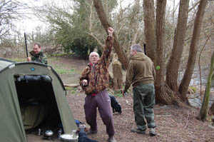 Looking out on the water and glancing at the buds forming on the nearby trees, I was shocked when my left-hand rod’s line lifted out of the water. Calling upon the long gone instincts, I eventually pulled into what felt like a carp! The fish came to the net, manned by my friend Rob, without much hesitation and an equally surprised carp, covered in leeches, was weighed at 22lb 12oz.
