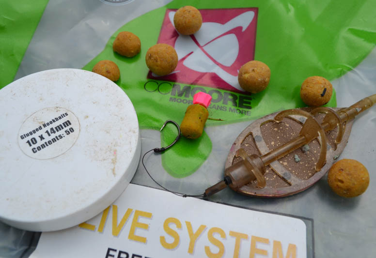 Due to the size of the fish, my approach was going to be changed to suit a much smaller stamp of fish. First of all my mainline was 10lb Mirage, quite thin and sinks like a brick, out of the way of the very line shy fish. Then, instead of a standard lead set-up, I used a flat bed method feeder. This gives the same presentation as a solid bag, but is much quicker and easier to use! The hooklink was then 10lb Gardner Target Speciskin, designed for general coarse fish but still very strong and incredibly thin. The hook was a size 8 Covert Continental Mugga, a big hook due to the softness of the mouths on these fish. Finally, the hookbait was a glugged CC Moore Live system dumbbell, tipped with a piece of fake pink corn. The feeder was loaded with scalded pellet, and the hookbait left free outside on a short hooklink. This set up was very different to what a lot of people would think about using in a carp match – but scaling down will always get more bites on pressured carp in heavily stocked lakes!