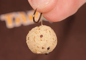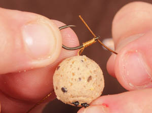 I don’t muck about with long hairs. If a fish inhales my bait I want the hook to go in its mouth too so the hair length is normally adjusted in that the bait just touches the bend of the hook. With a relatively short hair like this, the gap between the hook and hook bait allows just enough movement for the hook to turn and take purchase.