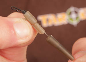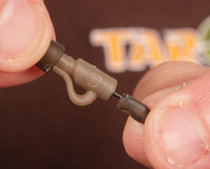 Typically, these waters are day ticket or club venues that are relatively clear of weed so the use of a lead clip on the rig I use is more for the convenience of changing lead size and shape – rather discharging the lead in weed as an aid to landing more carp. As I don’t want to lose leads I push the tail rubber all the way on flush with the clip’s barrel.