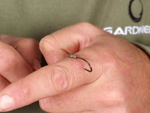 Step 5. Thread a large Covert Hook Aligner down the hook length (this will create a line-aligner effect) encouraging the hook to flip and turn in the fishes mouth.
