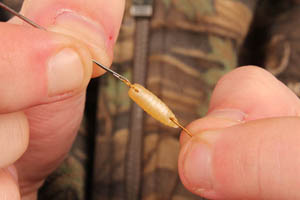 Step 3. …and carefully thread it onto your hooklink.