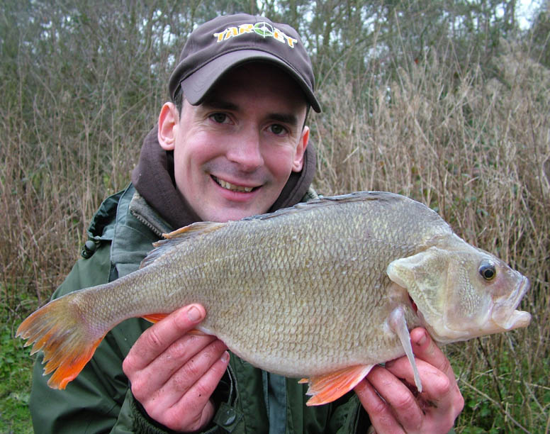 It wasn’t long at all until I started to get a few indications of fish activity around my float, and before too long, after a few hesitant trembles, the float slowly slid away. A firm strike was met with an even firmer resistance, which initially had me thinking I had hooked a root or something, but after a second or so, it started to move off and plod around hugging the bottom. It quickly became apparent that this was no perch, and after about five minutes of hairy moments of the fish trying to find sanctuary in every reed stem and tree root it could find, I soon had nice little mirror carp of about 12lb in the net. Not the intended species, but welcome evidence that it wasn’t too cold for the fish to be feeding, and a good test of the strength and durability of the Target tackle to land a fish like that on such light gear. After a couple of quick snaps, it was returned to its watery home, and I was sat back awaiting the next fish. It took a while for the swim to settle back down after the disturbance of the carp, but after a while I started getting a few wobbles on the float again. I would like to say that I then hooked more fish, but alas after a couple of totally unmissable bites that I somehow managed to miss, the float went quiet.