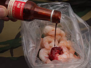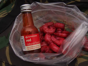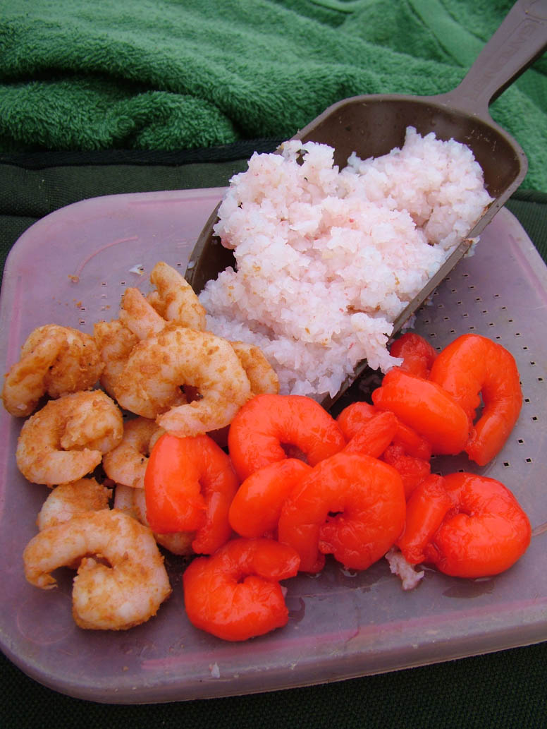 One rod was flicked just along my right hand margin, with a krill soaked prawn on the hook and a small scattering of krilly prawn bits in the rough vicinity. Rather than keeping all the bait in a tight area like my float set up, I wanted to keep each rod different to see if any patterns or methods seemed to be working better. With this rod done, I attached a bright red unflavoured prawn to the third rod and with a gentle underarm flick, I placed it next to the aerator. Around this, I then introduced half a dozen whole red prawns. It was time to sit back and hopefully await some bites.
