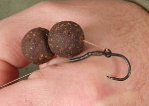Firstly I decided to go against the grain of bait and feed dark, fishmeal baits and the Odyssey XXX was the perfect match for this. I have always liked to fish with two baits on the hair, thinking that a bigger big will be a bit more attractive to a greedy carp, but also that a big bait is harder to eject. It seems the norm for people using two baits on the hair on most lakes is a bottom bait tipped with a bright, flouro pop-up in an attempt to try and catch the fish’s eye leading to quicker bites. However, on this lake I decided to go with two bottom baits on the hair, matching the baits that I was feeding over the top of the rigs. The thinking behind this was to try and get away from the many doubles and 20’s inside the lake, and try and select the fish that were feeding a bit more cautiously. In my opinion if a fish has eaten twenty or thirty boilies and not been hooked, it’s going to be happy to eat another one, but if the first time it eats a bright one it gets hooked- it is going to be a lot more wary next time!