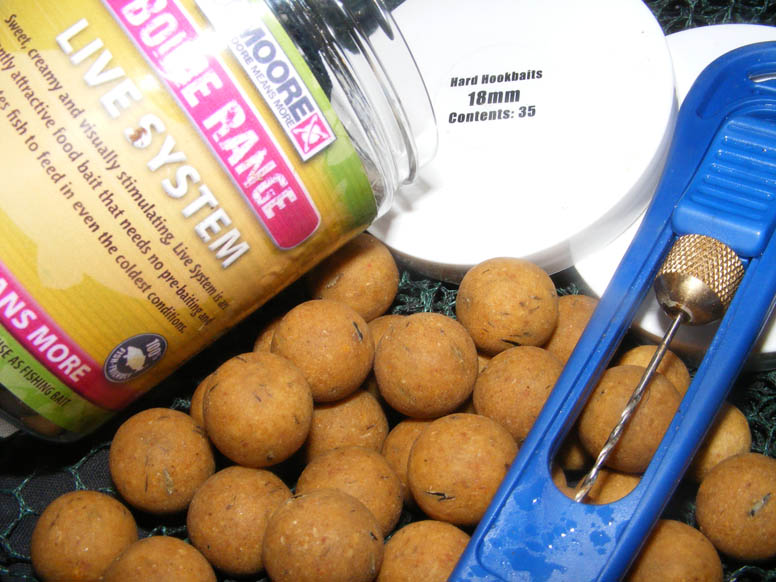 We had a few casts before we got fishing, just to make sure the weed wasn’t too bad to present the rigs on. Kev was fishing a third of the way across the lake and I decided to fish to the centre area of the lake. All of the spots seemed ok with only small amounts of patchy silk weed present, so we used hooklinks of around 10 inches. To try and prevent any issues with the crayfish we used harden Live System hook baits, which gave us confidence our rigs would be fishing a lot more efficiently than most soft hookbaits. We used our Gardner Hard Bait Drills to drill a hole through the bait so we could get the bait onto the rig.