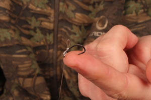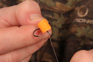 Step 7. The hook bait should look like this, with the hook partially hidden by the foam.