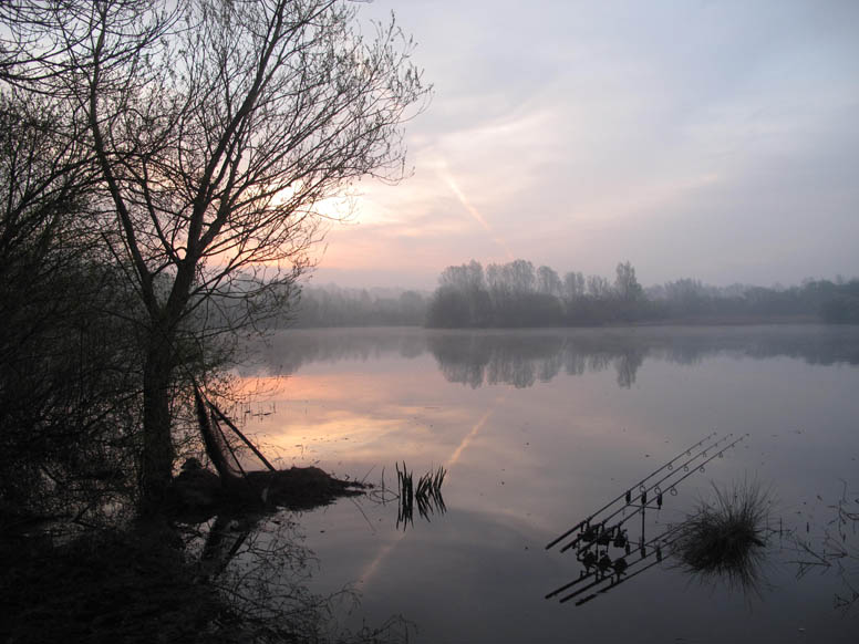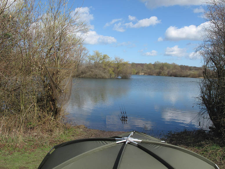 The following week I was in, and I left home at 4am to get there for dawn and the chance to look around. After several laps I had seen nothing, which wasn’t surprising as it was blowing a strong westerly that had waves with white caps on racing down the lake, and my rods were constantly being blown off the rests. To add to that I wasn’t sure if the fish actually showed on there, as I really knew very little about the lake despite my efforts to research it. However the following morning dawned flat calm, although it was dull and damp from incessant rain that had been hitting the brolly roof all night. My swim was central to the lake, and gave me a fantastic view of almost all of the water. Within 10 minutes I had seen several shows in one area, predictably out of the wind, in fact right on the back of it. Some of the shows were very subtle, and if I hadn’t known that there were no bream or tench present I would have thought they were responsible. But others were full right out of the water leaps, and by about the eighth roll I was packing my gear as fast as I could do so. With no finesse I was chucking it in everywhere, and sure enough none of it would fit back in, but I needed to get round there as soon as I could, as being a Friday I feared someone may arrive and beat me to it. I barrowed my gear round there in the lashing rain and needed have worried as beside me the lake remained empty of other anglers. This was a really tasty looking swim, with an island out in front at about 70 yards and a big visible bar running off it out into the lake. It is funny how looks across a lake are deceiving, as I first thought from my original swim that the fish had been showing in the swim next door, and I initially put my gear in there. On going back though I could see that I had it all wrong, and went back again and popped up a marker to be absolutely sure. In true style just as I put the Tempest up the sun came out, allowing me a chance to put my soaked kit out in the sun to dry. As the sun rose I could clearly see the area that the fish had been showing was a dark silty area between two bars at around 60 yards. One cast with a lead hit firmly down and I fanned my three rods in this area just feeling each one down with a nice hard thud. Such was the strength of the wind from behind I could easily get 12mm B5 boilies out there in the catapult, and I sat back confident that I was at least in the right area and fishing to my best. At around 2am I had a steady take on the right had rod that had me giving line as it tried to get over the bar behind where I had cast. It felt decent, until after a few minutes I felt a strange pinging and the hook came out. I’ve no idea why, but that was my only chance in what was my first session, all be it in pretty poor conditions, however I couldn’t wait for a return.