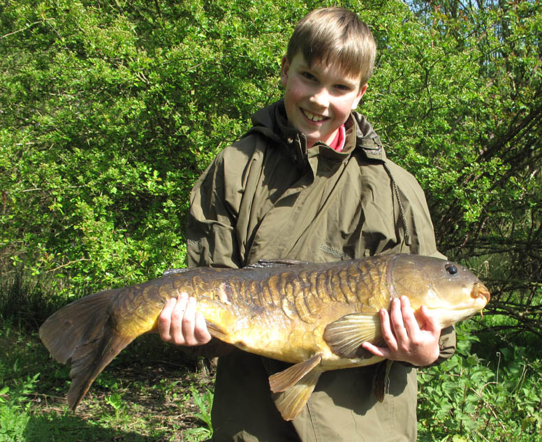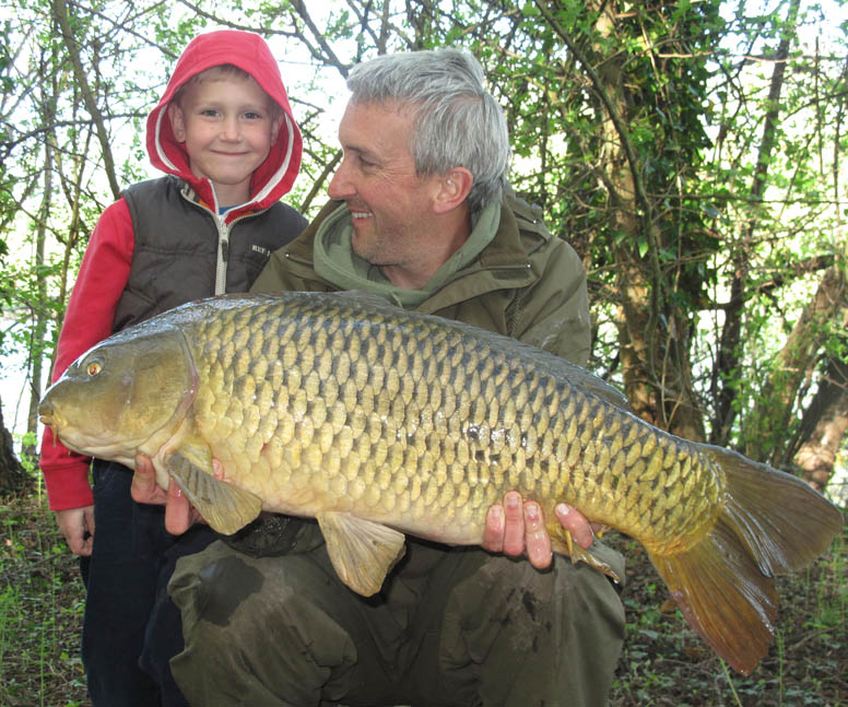 I woke early on a cool grey spring morning with a North wind blowing across the swim. At 6:30am I had a fast take on my right hand rod, with the bobbin smacking against the rod and the line pinging from the clip. As soon as I picked up the rod the fish felt heavy, its movements more plodding than fast runs as it made for the overhanging trees and snags that adorned the far bank. I held on not giving it anything and applied as much pressure as I dared to get line back on the spool. I knew once the fish was out in the middle and away from the snags that bar a bit of weed, it was relatively safe to out there. It stayed very deep and I instructed my son to take the net, which he excitedly thrust into the lake. As it came closer it rolled about 10 yards out, I instantly recognised the grey colouration to be the prize that I dearly wanted. I couldn’t really snatch the net back off my son now, so whilst trying to sound calm I gave him the verbal course on how to net a mid 40 lb fish that your Dad has been after for 10 plus years, without knocking it off! Seeing the fish, and now knowing what I was attached to did change things slightly, and I started to take things a bit more easily, allowing its powerful runs to tire it out against the action of the rod and the tight clutch. However, almost the first time it seemed to leave the bottom it was up and coming towards the net, and as it pulled over the cord Thomas lifted it and it was ours! One look inside and I knew it was the one that would make my season, and it looked big too. At 45lb 12oz it was too and absolutely nailed on a size 5 Covert Chod hook, the hinged stiff rig proving its outstanding hooking abilities again. It was actually so far inside that the putty and first loop of the boom section were inside the mouth. I put it in the retention sling while I summoned by wife to do some photos, when the same rod was off again only minutes after recasting. Being more than happy with my result I passed the rod to Thomas who played in a 23 lb mirror like a pro.