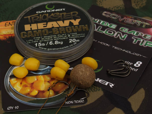 After setting up camp I located a lovely gravel bar at range, just short of where the fish had been showing. After measuring out the rods, I got to work with the spod and deposited a bed of 4mm trout pellets from CC Moore, two tins of corn and some crushed XXX boilies on the top of the bar. I soon had three rods positioned tightly on the bed of feed, a tactic which can often produce multiple bites. My rigs consisted of 12lb Pro Light Blend main line, 3 feet of Plummet leadcore, Covert Lead Clip and Tail Rubber, six inches of 15lb Trickster Heavy and a size 8 Covert Wide Gape Talon Tip hook. Hook baits were my ever faithful balanced stacks of corn from Enterprise Tackle or a XXX boilie tipped with a piece of buoyant corn.