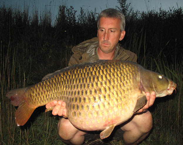 At Easter I’d promised to take my two boys fishing with the onset of better weather and I took a reece trip up to a water in the Colne valley that same week, with a view to bringing the kids up for a night each. Sadly the lovely quiet venue that I had remembered was packed, so I had to come up with a new plan. There was only one other water that was child friendly as it was, but it was a place with which I had lost most of my interest in, for a number of reasons. However, it was the only choice and it held one fish that I dearly wanted, as for at least the last 12 years it had eluded me. Quite why I’d never had it I didn’t know, but it was a territorial one and was often the first fish out every season. I knew from talking to another member that even though it was April, nothing had been out, when I arrived with my older boy with only an hour to go before dark. With no real time to look around,and margin fishing being out of the question with the boys there, I picked a proven swim and fired out 2 rods onto a silty spot at about 60 yards range. I didn’t need a marker, I could see lines of dense weed out there, with dark channels between them, so I cast up to the edge of this before holding the lead back and feeling that distinctive firm thud. With the light fading fast I was grateful for the rods going out so easily first time, and my older son Thomas and I set up the bivvy not really knowing what to expect. I did hear a couple of fish roll in the night, somewhere nearby and on this lake they don’t often show, so it all seemed fairly promising. At first light one of the rods was away, a slow steady take and with the deep heavy thumping I could tell immediately that I was attached to something good. After several minutes I saw the distinctive grey flank roll in the clear water and knew it was the one I so wanted. Thomas expertly netted it and I already felt that I had my seasons result. At 45lb 12oz it was awesome and made better soon after when I had another take and gave the rod to Thomas who played in a 24lb mirror. That night I swapped over with the boys and my wife came down with fish and chips which we all sat and ate in the early spring sun, a magical moment. That night I added a 25lb common, which my younger boy slept through oblivious!