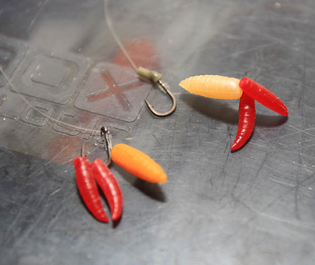 I like to use this rig for 2 reasons. Firstly, should your bait get taken and sucked by small fish you are guaranteed to still be fishing; and secondly, the fake maggots once again neutralise the hook weight making the rig very efficient at hooking the fish.