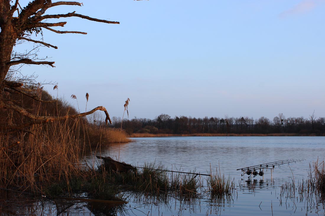 After having a good walk around I chose a swim at the far end of the lake. A lot of the fish were showing along the reed lined margins, which meant wading would be essential. After getting setup, it soon dawned on me that I had left my chest waders back at home in Norfolk, so I settled for using my crocks for positioning the rigs and landing each fish.