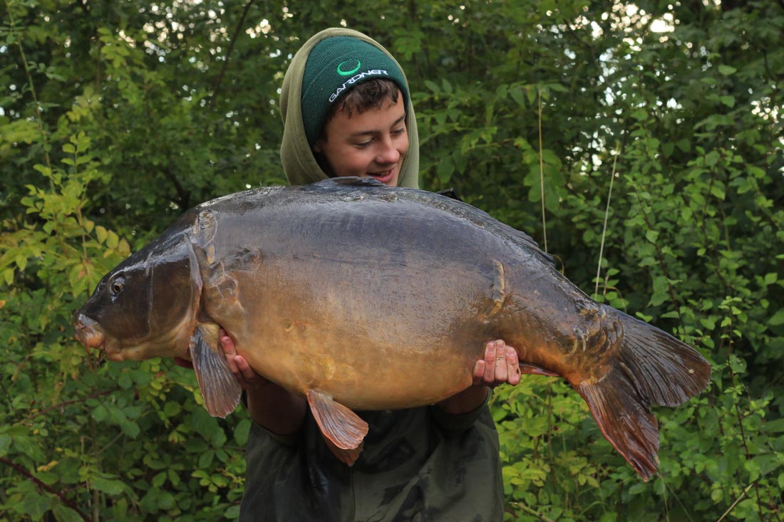 When I walked over to get the fish out, I saw it was decent one and it had a big single scale on one of its flanks. I said to my mate it was a fish known as Single, but he didn’t believe me. As soon as I felt the weight of the fish as I hoisted her up onto the mat I knew it was her! The scales shot round to 44lb 8oz, which confirmed it was Single Scale and a new PB to boot. Buzzing was an understatement! I slipped her into the sack whilst my mate was on his way down and started to wake all my mates up and tell them what had happened. When my mate got down we got her out for some memorable photographs.