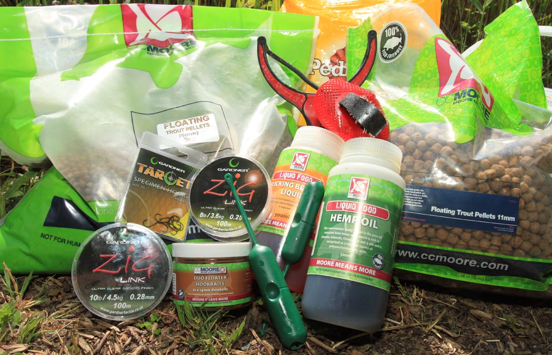 A surface controller, swivel, 10lb low diameter mono hooklength such a Gardner Zig Link and a hook is all you need for the business end of surface fishing. Starting at the reel a 4000 or 5000 size loaded with 10lb line is ideal, coupled with a 2lb test curve barbel rod you’ll have a well-balanced outfit that is capable of landing the biggest of carp. My choice of controller is the Gardner Flatliner in its smallest size, small, streamlined and ideal for fishing at ranges up to 50 or 60 yards these are tangle free and cast like a bullet. I choose fish my Flatliner inline and locked in place by 2 Large target Rig Stops and then tie on a large ring swivel using a palomar knot. I prefer to attach my hooklength to the swivel using the loop to loop method after tying a large overhand loop knot in the hooklength to be used. This gives the rig 2 added advantages, the large loop helps kick the bait away from the controller on the cast and if you need to change the hooklength due to the feeding situation its quick & easy to do without tying knots and messing about with cutting off the existing hooklength.