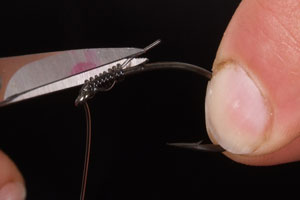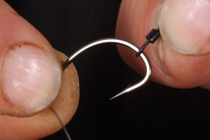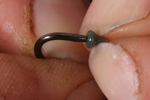 Step 4. Next thread on a Covert Hook Stop carefully teasing it over the barb to maintain its grip.