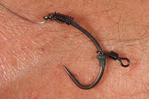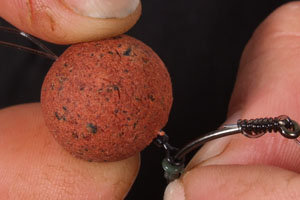 Step 7. We prefer to use a wafter or snowman hookbait and mount the hookbait with the swivel embedded neatly in the base like this.