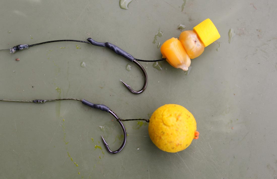 Tactics wise, my hook baits were Mainline Essential IB 15mm wafters, which had been soaked in the hook bait enhancer. I also played about with a maize hook bait and caught a few carp on this however it was the IB wafters that caught all but 3 or 4 of the fish. My rigs were very simple, Gardner Pro XM mainline, 3 foot Camflex Leadfree leaders and Covert lead clips. Hook links for the boilie set up were tied using Ultra Skin simply stripped back and knotless knotted around the ever faithful Covert Mugga hook. The maize hook link was a combi-link tied using Trick-Link for extra stiffness and Trickster Heavy braid again knotless knotted to a Covert Incizor hook and some shrink tube added, set up line aligner style for added speed and aggression when turning.