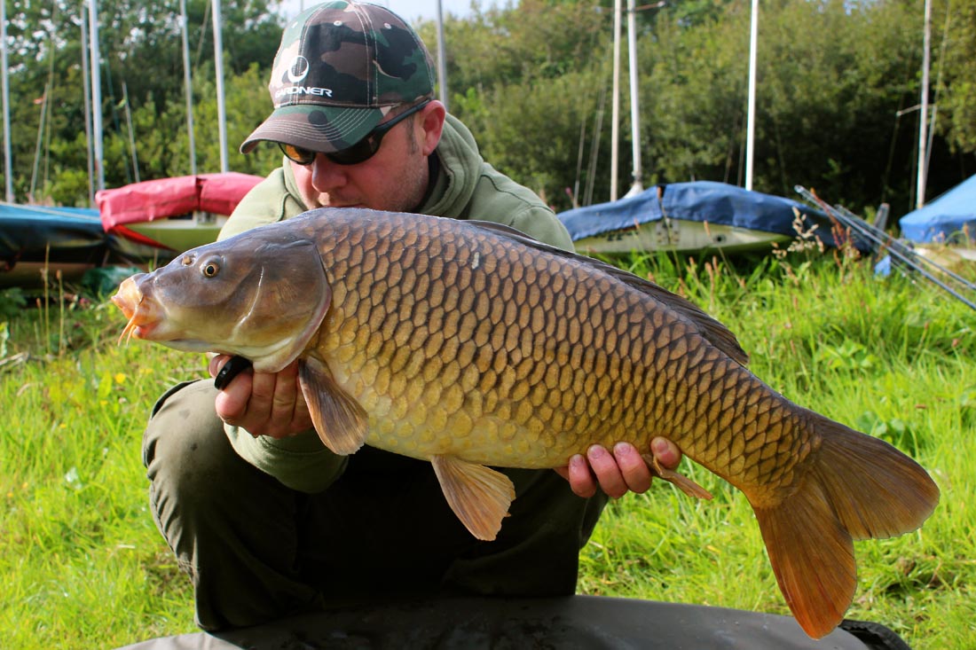 I settled for a swim close to the Boat House and as I was setting up I saw another fish show at about 110 yards. I quickly whacked a single hook bait with PVA stick out to it and within 10 minutes I had a one toner and my first fish was soon on the bank, which resulted in a nice double figure hard fighting common carp.