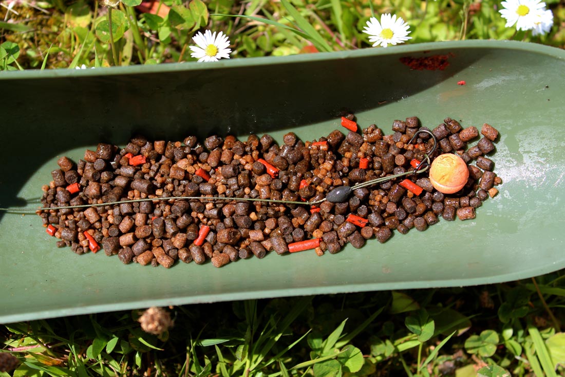 Bait wise I use chopped boilie, usually Cell and Hybrid. These half baits flutter down and nestle into the fluffy silt. Whole baits sink in and disappear. Along with the boilie I also use a mix of pellet, again usually the dedicated Mainline Cell and Hybrid. I add Mainline Fosoil to the pellet to give them a nice coating and a short soak just prior to them going in. This creates a nice flat spot when the fish are over the bait alerting me to expect a take at any given moment.