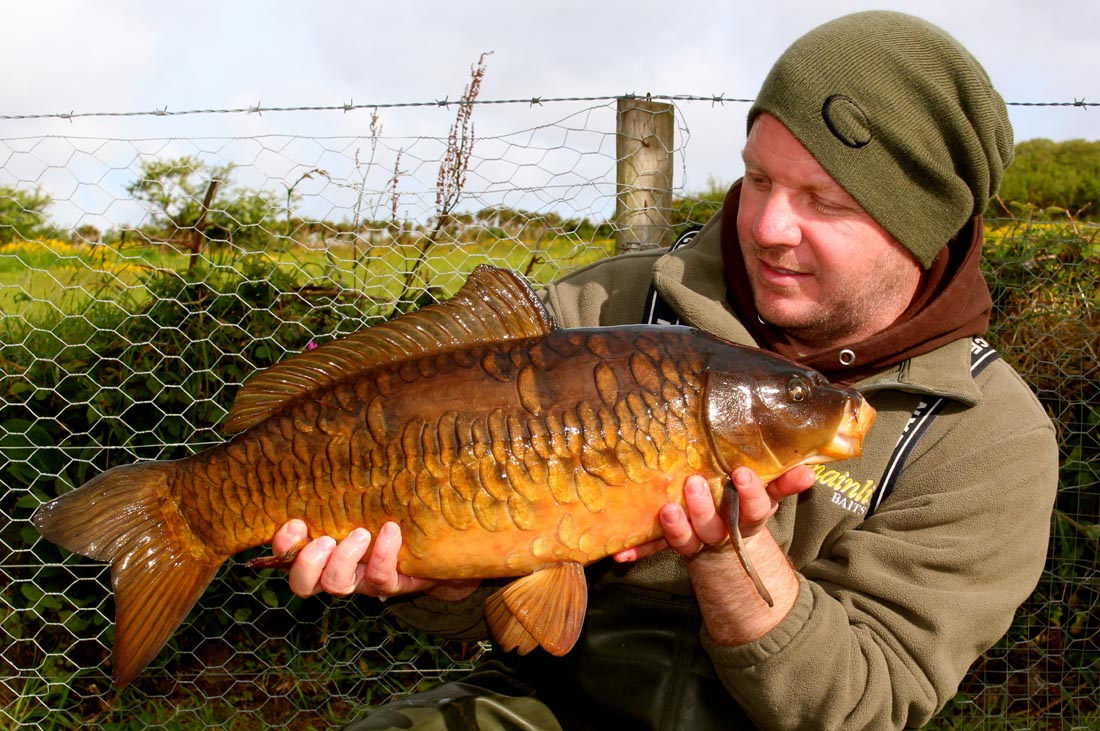 The lakebed where I’m fishing at the moment is extremely soft with fluffy silt covering most of it. I have caught fish on naked chod rigs, this being the obvious choice. However, I needed to adjust my set up for a couple of reasons. Firstly I noticed them spooking off the highly visible fluoro pop ups I was using, which were mounted on standard length chod hook links. Secondly, I needed to fish with a tighter line for much quicker bite indication. I kept to a helicopter set up but changed over to multi-rigs, which allowed me to present a lower to the deck pop up and I rolled myself some dulled orange citrus specials utilising the Gardner rolling kit and the Polaris mix and liquid additives from Mainline. This new set up worked a treat for me and I landed several carp over my next few over-nighters. The carp on this venue aren’t large by any stretch of the imagination but they are stunning, as you can see from the photos. I think the carp angling world has gone mad for big fish. Don’t get me wrong, I love catching a whacker but carp of any size are more than welcome in my net.