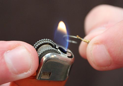 Step 4. Push the grub over the hook eye. Test it’s lined up correctly by gently drawing the hooklink over your finger. The hook should flip over.