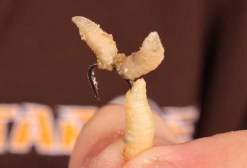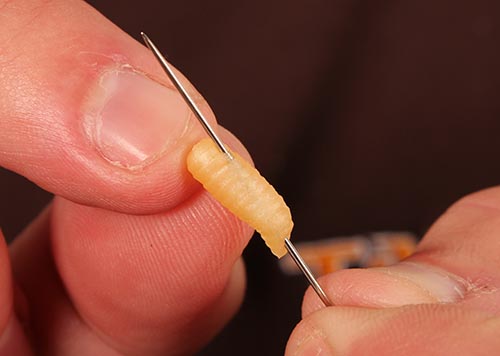 Step 5. Carefully nick two maggots onto the hook.