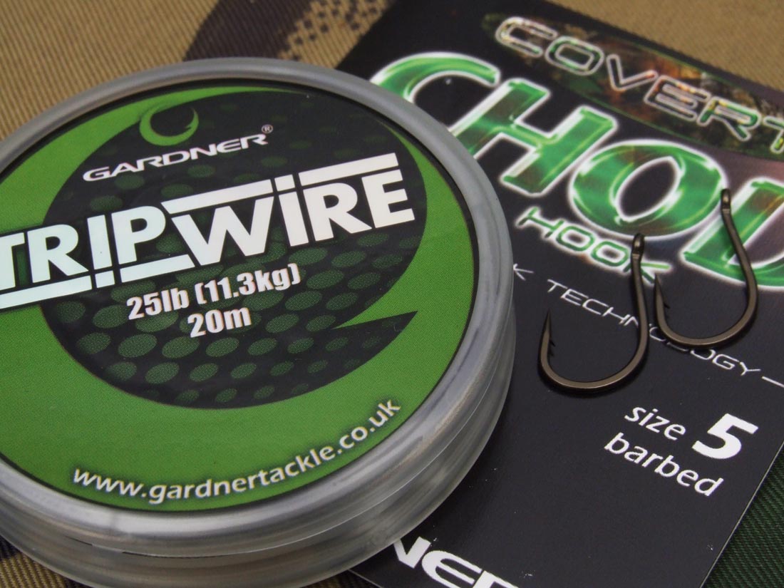 With my time being limited, I had come prepared and had tied a couple of rigs the night before. My choice of rig for this session was the ever faithful hinged stiff rig, tied using 25lb Trip Wire, size 5 Covert Chod hooks and boom sections tied using 25lb Trick-Link.
