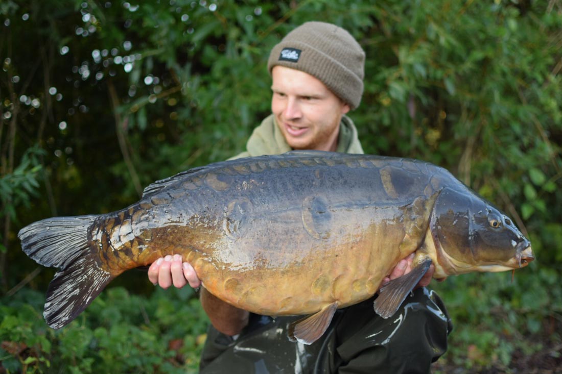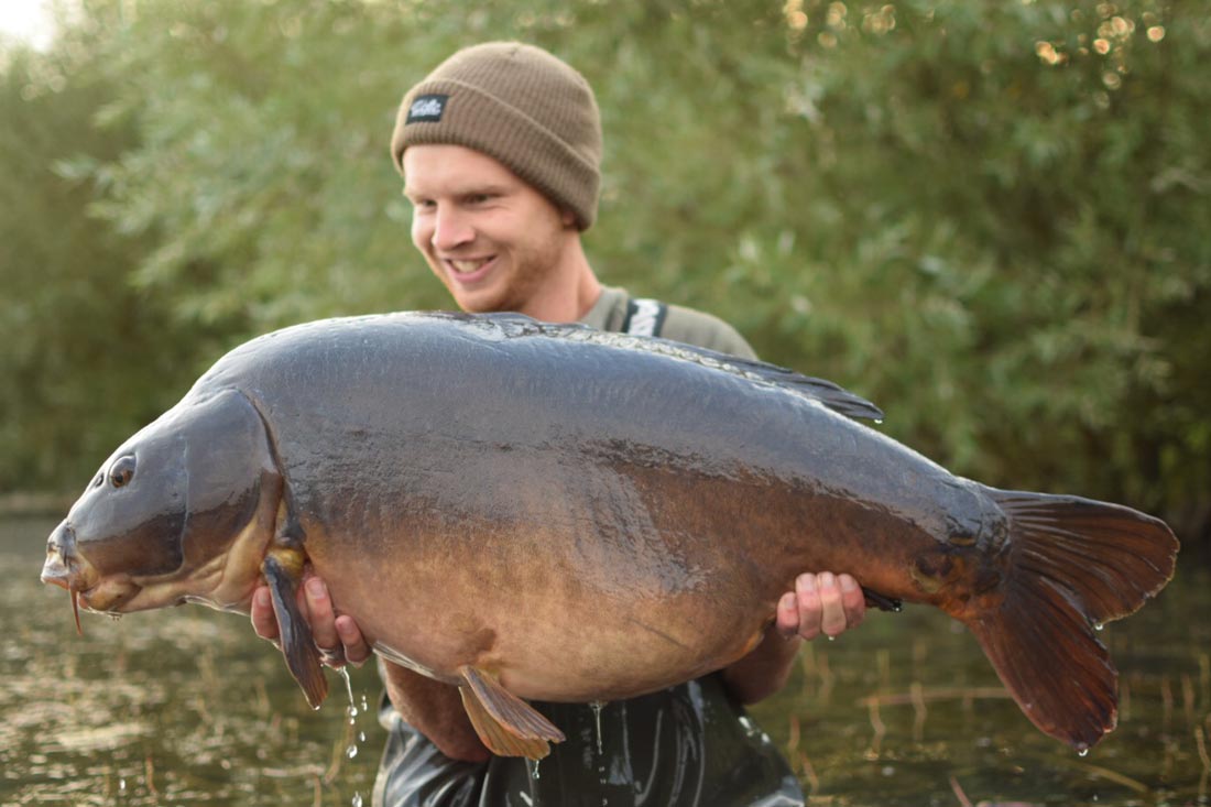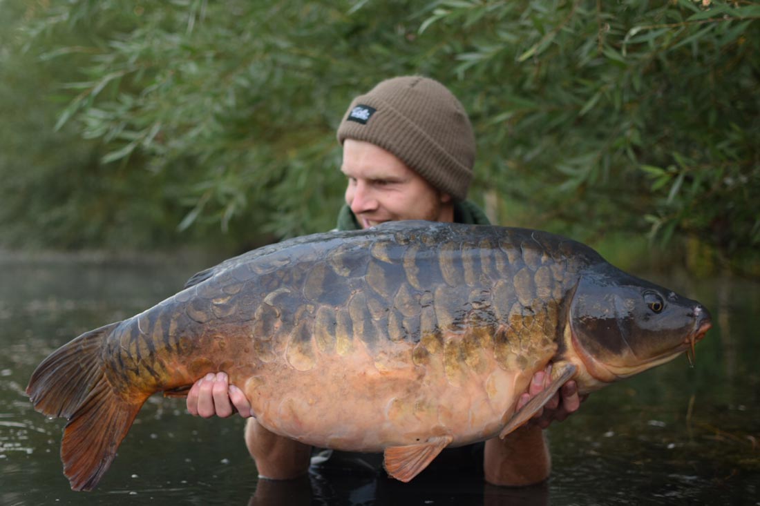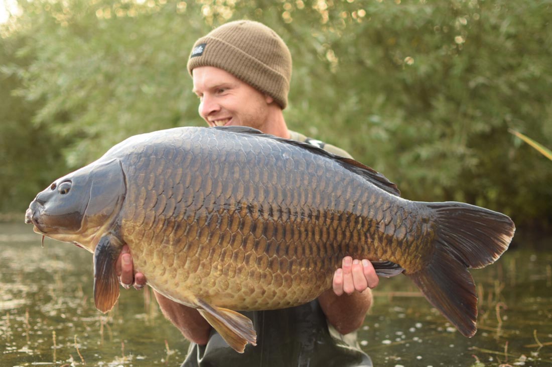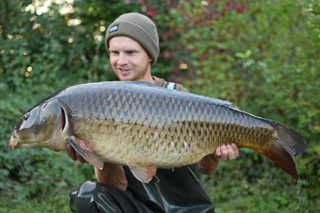 Luckily, everything kicked off on the 3rd day when I landed a lovely personal best common of 39lb 14oz – an awesome carp with some lovely white tips to its fins. A huge sloped nose 45lb mirror followed shortly after, and before I knew it both spots where rocking!