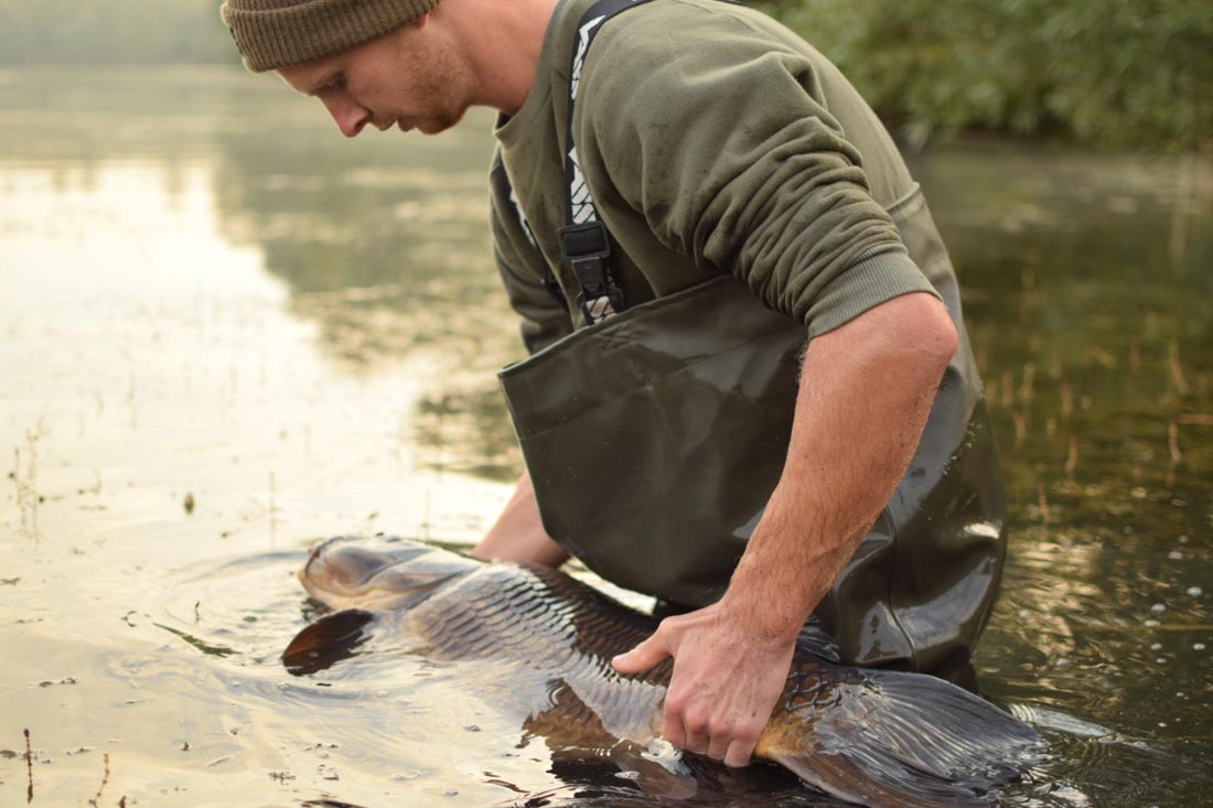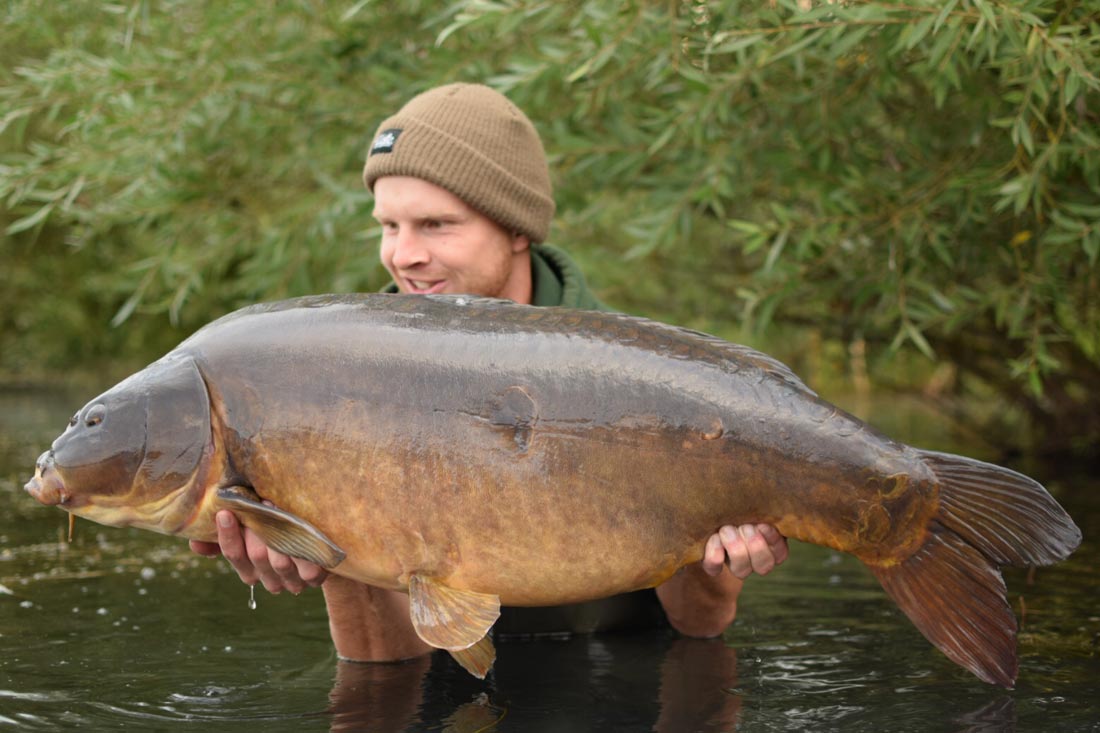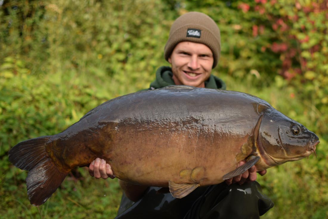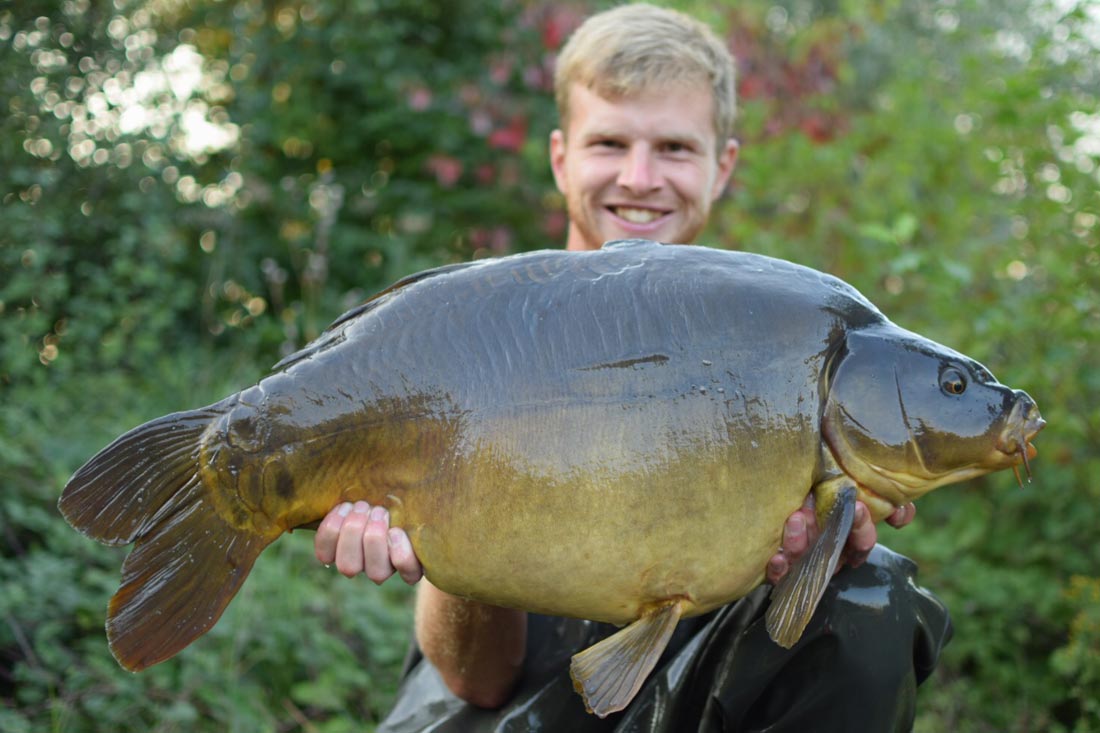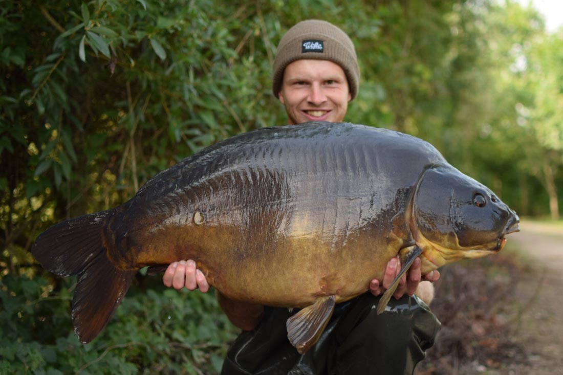Luckily, everything kicked off on the 3rd day when I landed a lovely personal best common of 39lb 14oz – an awesome carp with some lovely white tips to its fins. A huge sloped nose 45lb mirror followed shortly after, and before I knew it both spots where rocking!