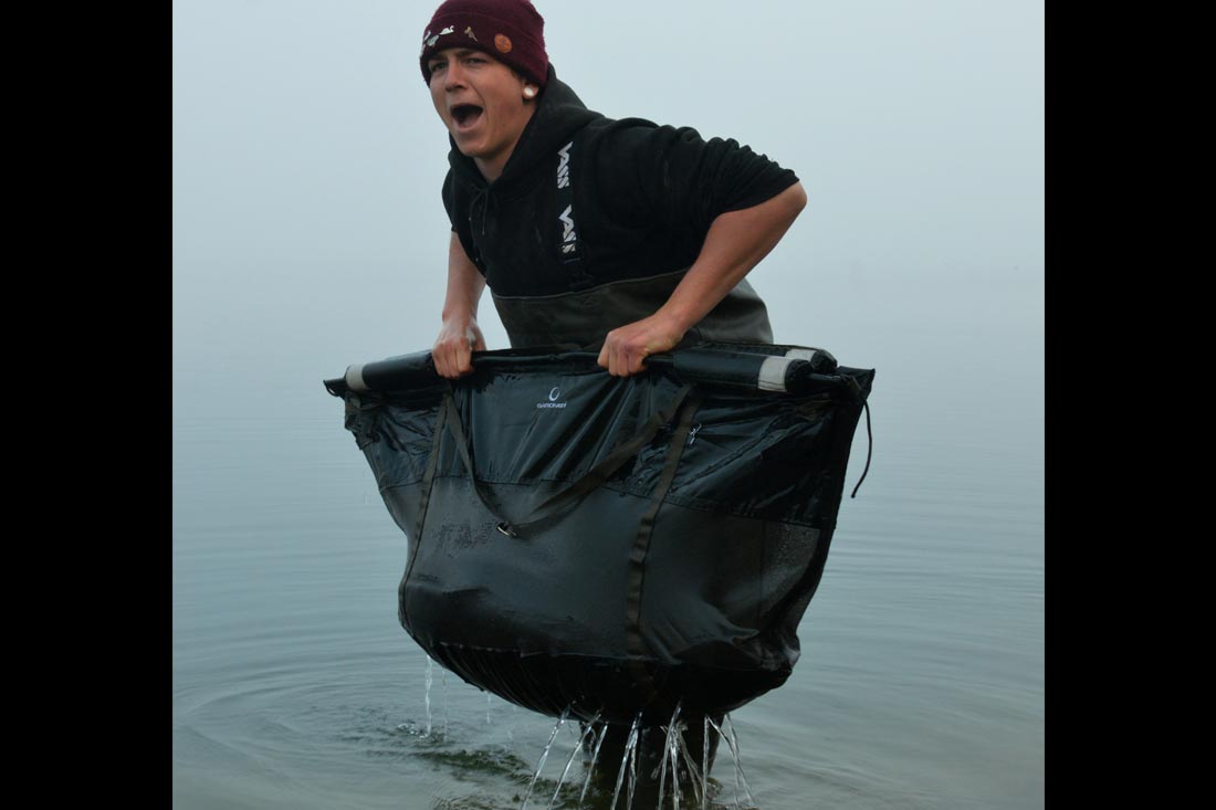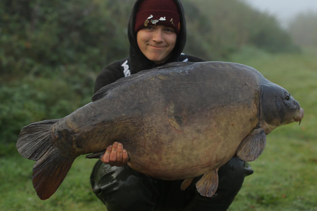 At around half past 4 in the morning, I was awoken to a single bleep, followed by my clutch going into absolute over drive, and seconds later I found myself bent into a very large carp. The fight was very straight forward, just 15 minutes of very heavy lunges, and slow plodding. Finally the battle was almost over! When she came up for the net, I knew it was her! I scooped the net under what can only be described as a baby whale, and as she passed over cord, I let out a massive ‘YESSSSSS!’.