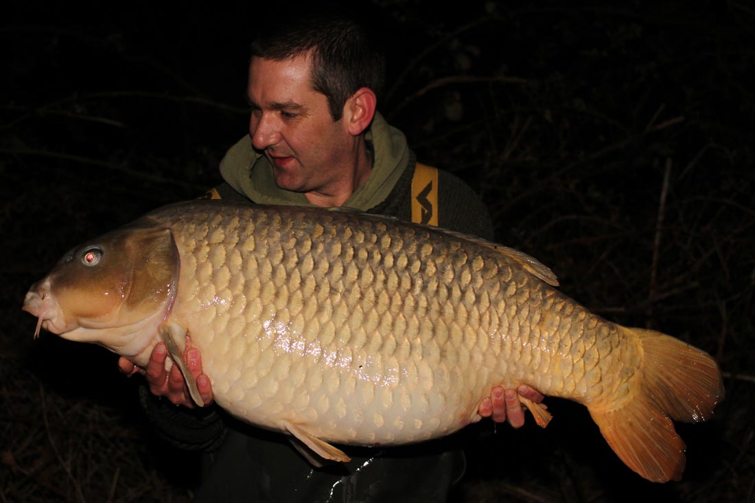 I soon had the fish in close and duly netted it and pulled her back into shallower water and nipped up the bank to get my head torch. It was chunk and at first l thought it was a recapture of the Chinese Common. The Mugga was solidly implanted in her lip about an inch back and hadn’t moved a millimetre (like normal) and she was literally mint. Not a mark or blemish on her, which is always lovely to see.