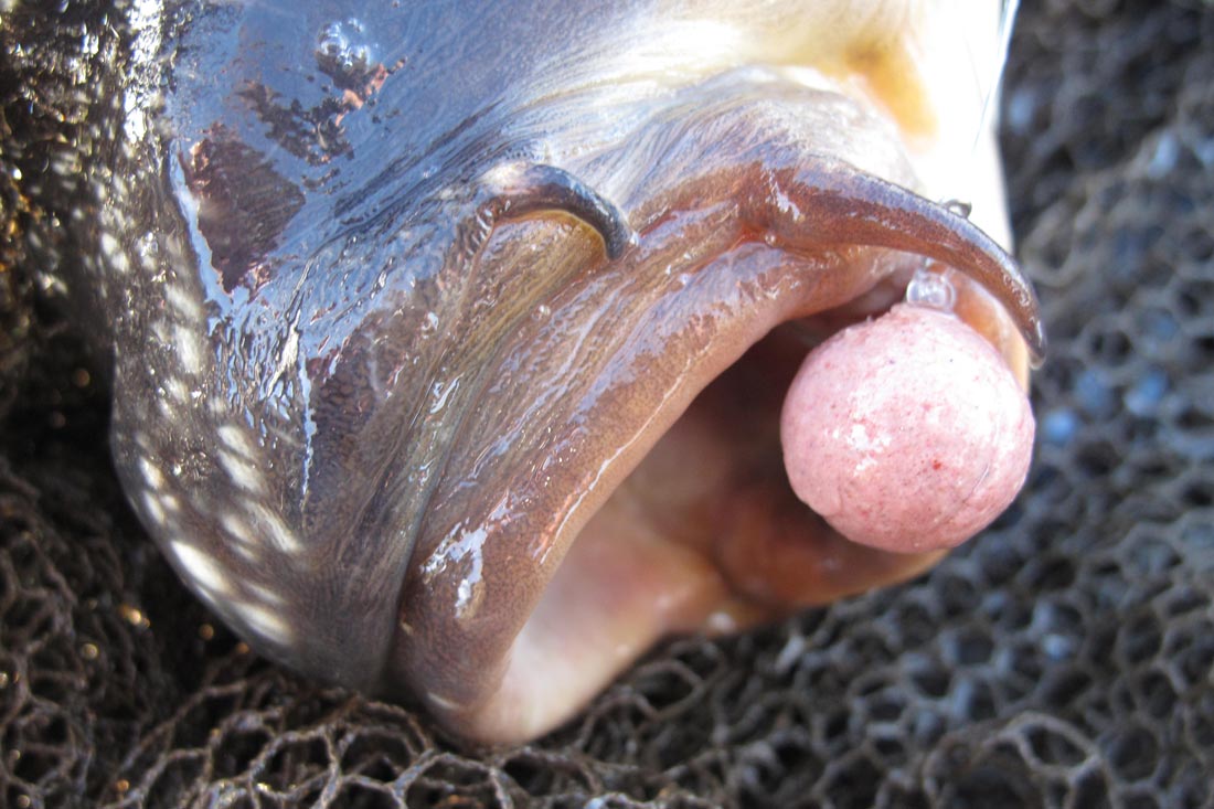 The rods went out well, both with short stiff rigs on with screwed-on pink pop-ups, my now favourite colour to fish over the standard dark red of the B5. I’d boosted up the bottom baits with a coating of Salami glug whilst frozen, and on thawing, the coarse nature of the base mix had drawn it all in. The beauty being with the main spot was you were either on it or not; it was that easy to tell, and after a few attempts I felt a lovely dull thud down the blank as the lead hit solid bottom. I didn’t pull back at all, knowing the stiff boom of the hinge rig would kick the bait well away from the lead as it feathered down. This rig has to be fished helicopter/rotary style to get the best from it, and I find it strange people use a soft boom section, as the bait separation on a stiff mono boom is one of its greatest advantages. With an aggressive curved hook link section, this rig doesn’t rely on the lead for hooking, which meant I could use nice small chod leads that hit the surface with a gentle plop, rather than an almighty splash. I slackened the lines off, and had them hanging vertically down from the rod tips with the bobbins resting on the floor, so all in all I couldn’t do it any better.