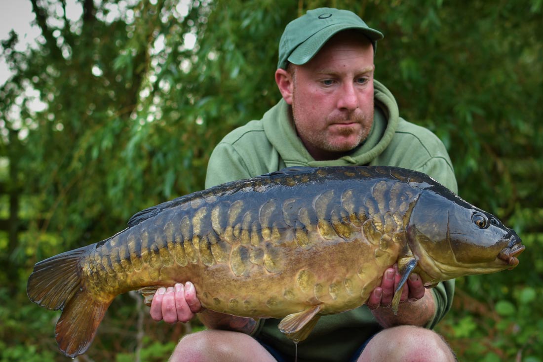 After returning from breakfast the conditions looked good for more bites, I quickly attached fresh hookbaits, checked the hook points, wrapped up the rods and re-positioned them. It wasn’t long and I was away again resulting in another lovely mirror. After the pics were done I repositioned the rod I put some more bait in and went through my camera counting up the fish. Suddenly the right hand rod was away but unfortunately by the time I’d stopped the fish and turned it the hook pulled. I was pretty gutted as it felt like a good fish. Time was running out and it still looked so good, so I asked the ‘Home minister’ AKA the wife if we could arrange childcare for our daughter as she had work and needed cover, which would allow us to stay until Monday. Lady Luck was looking down on us as later that day when I’d come to terms with the end of the session, the phone rang half way through packing up and the wife granted permission that we could stay until Monday. As you can imagine I was overjoyed and practically doing cartwheels around the swim as 48 hour sessions for me these days are few and far between.