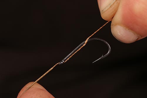 The initials NS stand for ‘Nice and Simple’ and the rig is just that, very simple to tie but ultra-effective. It’s constructed using a size 6 Covert Dark Incizor and a length of Stiff Ultra Skin. The rig has all the mechanics of a sliding D presentation and it has a small section of coating left by the eye of the hook which acts as a kicker, aiding the hook to flip and turn.