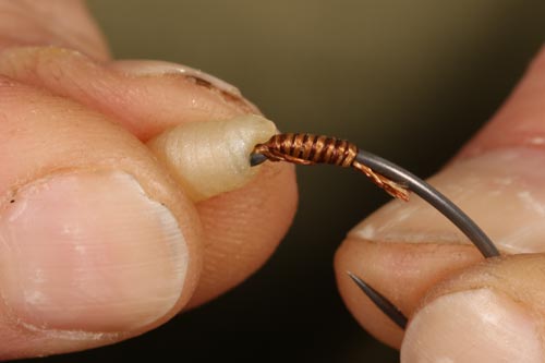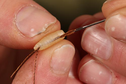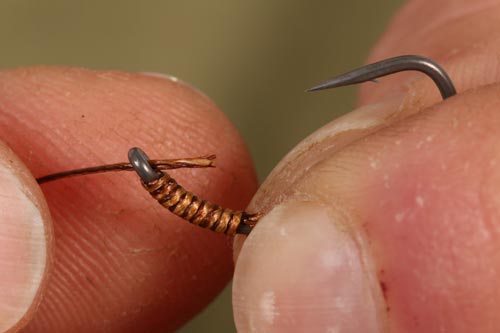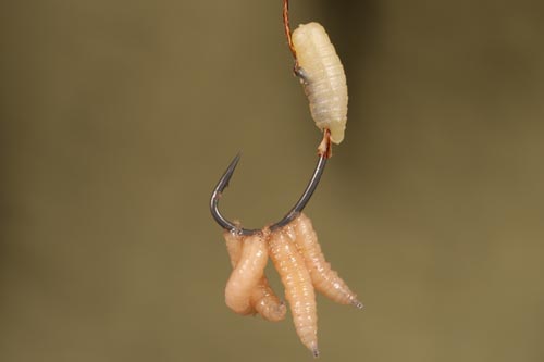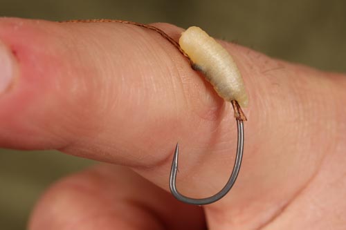 What this ultimately creates, when the finished rig is lobbed out with a Micromesh PVA bag, is a hugely appealing patch of maggots camouflaging the complete rig and a baited hook that blends in perfectly with the freebies. What this ultimately means is when a carp tilts up and starts browsing on the freebies the slightly balanced hookbait, mounted on a soft hooklink material, lifts easily into the fishes mouth and takes immediate hold thanks to the devastatingly effective hooking mechanics of the CVR or Mugga combined with the enhanced aggressive action of the ‘aligner’.