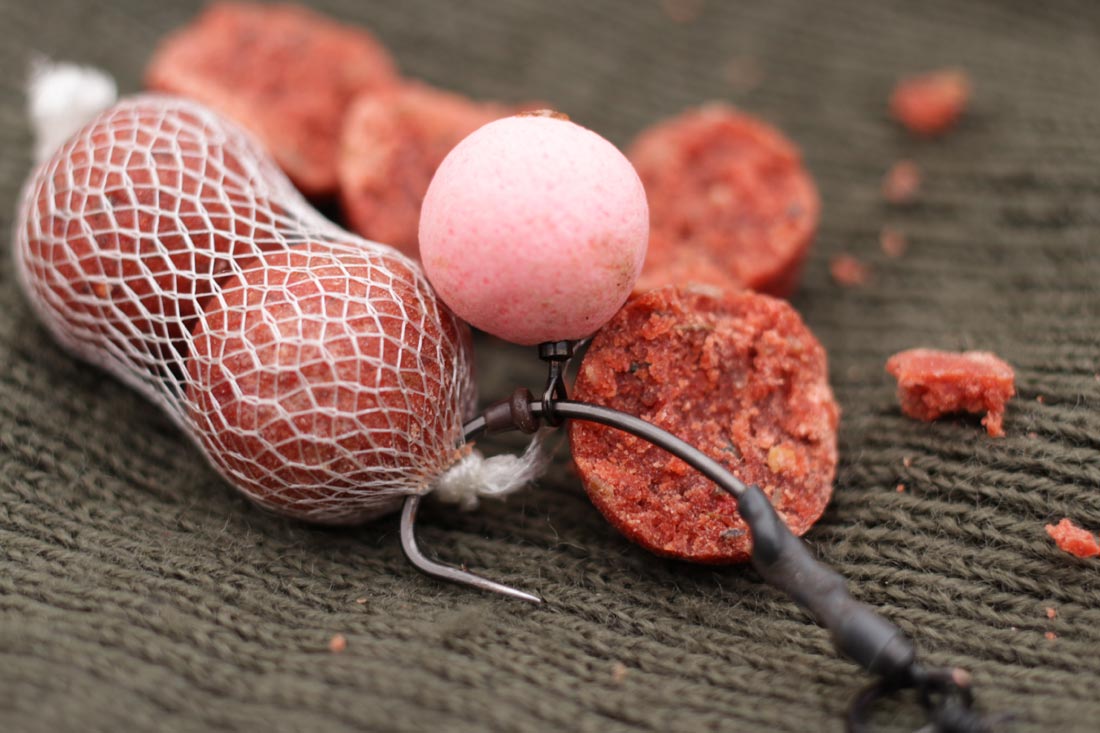 A scum line on the back of the wind showed where the fish had shown in alignment with a rarely fished swim on my way across the lake and I soon had a little pink 12mm Carp Company Caviar and Cranberry pop up on a size 4 Mugga Ronnie with a 4 bait stringer smack on the spot where the fish showed. The rod went down with a nice thud in about 5ft of water and I was sure it was fishing effectively.