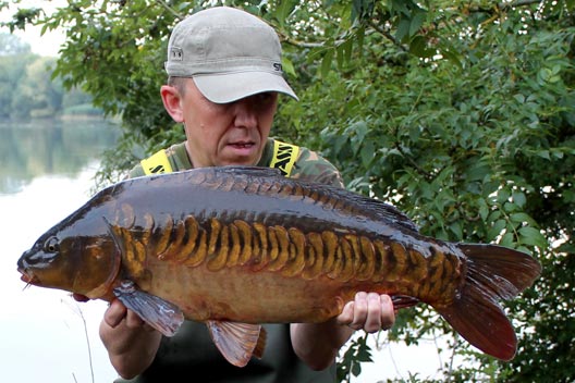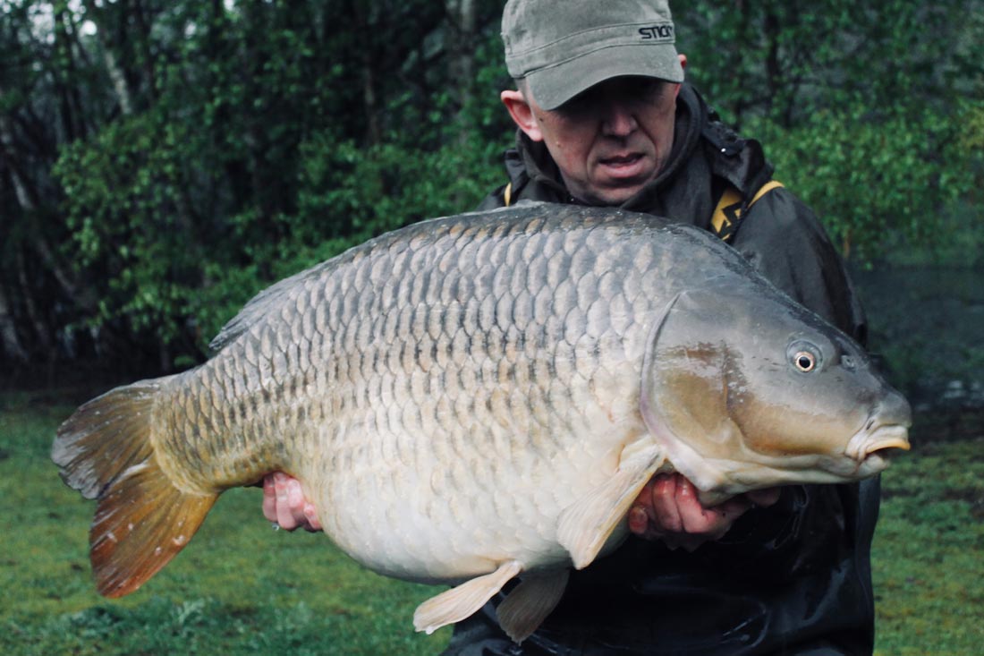 With work the following morning in mind, I hit the pillow at 9pm and slept solidly until I was rudely awoken by what became my third carp of the session; all 41lb of it in the shape of ‘Single Scale’. If I had thought the fight from the Chinese was epic, then this was the same again plus some! Oh my word. After 15 or so minutes, she was (finally) safely retained and I was assembling the camera kit on the bank so everything was ready before I woke ‘KKK’ from his deep sleep. Kris very kindly duly obliged with photos of this lovely looking mirror. With only 3 hours of my session remaining, I decided not to recast this rod, choosing to not disturb the other perfectly set traps already lying in wait. Whether that decision had any part to play in what then unraveled, I will never know. But 30 minutes later, I was doing self takes with a 29lb common very swiftly followed by a 22lb common on my third and final rod. It was now 5:30am and I had no rods in the water. I was totally over the moon and the carp had literally ‘smashed me up’.
