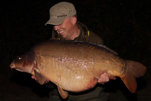As we moved through Saturday, I was very surprised that I remained the only new arrival that day! With Lew and Gavatar now departed, it was now only Steve, new member Mike Bridges and I on for the night. With all three Ronnie’s deployed, I was very confident of a bite. During the night, the wind really did pick up! In fact it was strong enough for me to hold onto my brolly, just in case. At first light, two single beeps were promptly followed by a one toner. It wasn’t long until I slipped a very welcome 34lb common over the net cord. As the morning daylight hours progressed, the usual procession of Sunday arrivals steadily popped in to say hello, and going into the evening there were now 11 anglers on. With the sun making a more prominent appearance during Sunday, it wasn’t a huge surprise when an hour after dark one of my rods was away again. The battle that then occurred was simply unbelievable. The power of some of these Welly carp, is like nothing I have had the pleasure of enduring before. The faith I have in the Gardner GT-HD line in these circumstances, gives me every confidence to control elements of these fights. Anyone that has battled a furious fighting-fit monster carp will know what I mean. Although a repeat capture for me, the epic A-Team member named ‘The Chinese Common’ spun my scales round to 48lb! As always, other members were happy to help with the pictures and to help with handling her on the bank. Thank you to Mike and Kris for the assistance.