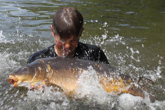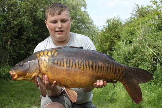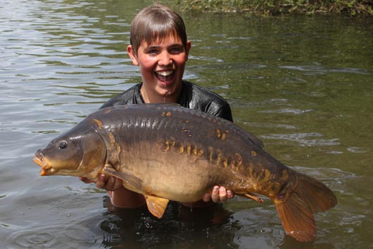 After dinner we returned to our swim for the final night and got everything sorted but decided to change one of the long rods over to a zig set just off of the baited area. It was a bloody good decision as no more than five minutes later the 6ft zig, fished with a small piece of yellow foam was in absolute meltdown. Lennon was first at the scene and took over the rod to commence battle with another angry Horseshoe carp. The fish put up a brilliant account for itself at long range and I was convinced that he was about to break his PB again – should we get it in the net! I’m glad to say that everything went to plan, and a lovely dark Horseshoe original rolled in to the net first time of asking. My suspicions were also confirmed when we weighed the fish at a new PB weight for Lennon of 22lb 12oz, and to say he was buzzing would be the understatement of the year!