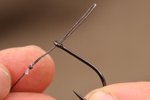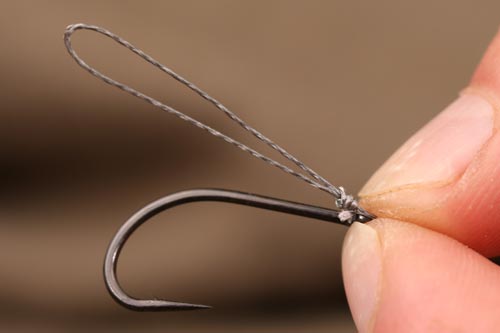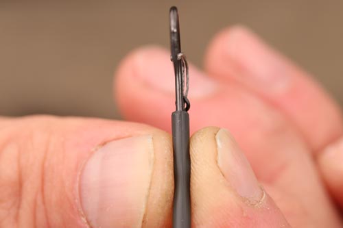 The first of these was the capacity to swap the hook out easily, with a multi-rig style hook attachment. I definitely didn’t want the hook loose on the looped section, as otherwise I always worry that the hook can sometimes move slightly in terms of the position it’s initially set. This changing the size of the ‘D’ and therefore totally changing the fine tuning of the rig and potentially undermining the finished rig’s performance.