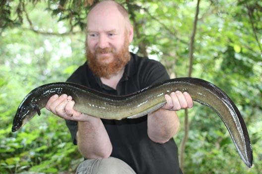 I missed a couple of takes early on, just after dark on the worm rod, but in the early hours, I finally connected with something that straight away felt very substantial. After a short but frantic battle, I saw a huge eel twisting and turning in the torchlight, and after a couple of close shaves with the net, I finally scooped it into the mesh. I knew straight away I had blitzed my old long standing PB of 3lb 10oz, but could hardly believe my own eyes when the needle on the scales flew straight round past 5lb, eventually settling on 5lb 9oz, and on my first night of my campaign!