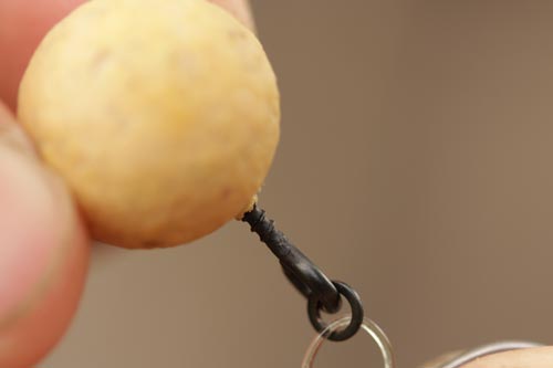 Step 11. Most good pop-ups will require Tungsten Putty to balance them. Mould it on the (dry) hooklink as shown, so the hookbait sinks slowly.
